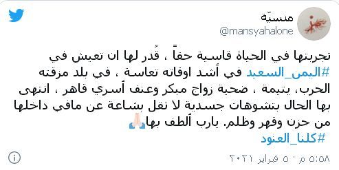 هذه المرة، شغلت قصة الشابة اليمنية "العنود" رواد مواقع التواصل الاجتماعي في اليمن وعدد من دول العربية لأيام متواصلة.